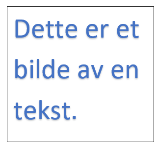 Alternativ tekst for bilderLytt til tekstenStopp avspillingDen alternative teksten skal beskrive bildet for brukere som har problemer med å se bilder. Publisert av ACOS System Sist endret 22.11.2023 09:35 Denne informasjonen er eldre enn 1 år og kan være utdatert Informativt bilde skal ha gode alternative teksterAlle informative bilder skal ha alternativ tekst.Skriv kort og begynn med det viktigste.I den alternative teksten skal du beskrive hva som er på bildet. Alternativ tekst vil ikke vises, men vil bli lest opp av skjermleser. Eksempel på et informativt bilde Bilde av tekstIkke bruk bilde av tekst. Tekst skal du så langt som mulig presentere som tekst, og ikke som bilde av tekst. Lenkede bilderDen alternative teksten for lenkede bilder blir lenketeksten for sterkt svaksynte brukere. Beskriv lenkemålet i den alternative teksten til bilder. Dekorative bilderMerk at rent dekorative bilder skal ha attributt for alternativ tekst, men atributten skal være tomt, alt="". På bakgrunn av dette, er alt-tekst fjernet i denne oversikten og bildet ikke klikkbartEndringsønsker for alternativ-tekstTest av alternativ tekst for bilderVerktøy: WebDeveloperTest at informative bilder har forklarende alternativ tekst.Test at det ikke er benyttet bilder av tekst.Test at lenkede bilder har alternativ tekst som forklarer lenkemålet.Bannerbilder bilder regnes som illustrative bilder og skal ikke ha atributt for alternativ tekst. Vil du se denne videoen må du godkjenne funksjonelle informasjonskapsler. Vil du se denne videoen må du godkjenne funksjonelle informasjonskapsler. Hvordan skal du benytte altattributt for bilder?*Se forklaringer under tabellenInneholder bildet tekst?Nei: Fortsett til 2 ⬇️ Ja, og hvis...teksten er også i artikkelteksten i nærhetenBruk et tomt altattributt. Se dekorative bilderteksten vises kun for visuelle effekter.Bruk et tomt altattributt. Se dekorative bilderteksten har en spesifikk funksjon, for eksempel er et ikon.Bruk altattributtet for å kommunisere funksjonen til bildet. Se funksjonelle bilderog teksten i bildet er ellers ikke til stede.Bruk altattributtet for å inkludere teksten til bildet. Se bilder av tekst .2. Er bildet brukt i en lenke eller en knapp? Kan du unngå å bruke bilde som lenke?Nei: Fortsett til 3 ⬇️ Ja:Bruk altattributtet for å kommunisere lenkemålet for koblingen eller handlingen som er utført. Bidrar bildet med mening til gjeldende side eller kontekst?Nei: Fortsett til 4 ⬇️Ja:... og det er grafikk eller fotografi.Bruk en kort beskrivelse av bildet på en måte som formidler den meningen i altattributtet. Se informative bilder.… og det er en graf el.Ta med informasjonen i bildet et annet sted på siden. Se komplekse bilder .og det viser innhold som er overflødig for ekte tekst i nærheten.Bruk et tomt altattributt. Se funksjonelle bilder .4. Bidrar bildet med mening til gjeldende side eller kontekst?Nei: Fortsett til 5 ⬇️Ja:... og det er en enkel grafikk eller fotografi.Bruk en kort beskrivelse av bildet på en måte som formidler den meningen i altattributtet.… og det er en graf eller et komplekst stykke informasjon.Ta med informasjonen i bildet et annet sted på siden.… og det viser innhold som er overflødig for ekte tekst i nærheten.Bruk et tomt altattributt.5. Er bildet rent dekorativt eller ikke ment for brukeren?Nei:Denne guiden dekker ikke alle tilfeller.Se om du finner mer informasjon på w3c sine sider om bildebrukJa:Bruk et tomt altattributt.Se Dekorative bilder . WCAG kravnummer: - 1.1.1 ikke-tekstlig innhold, 1.4.5 bilde av tekst