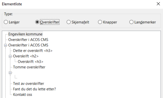 Når dere skal lage innhold i ACOS CMS må dere bruke riktig overskriftskoder.